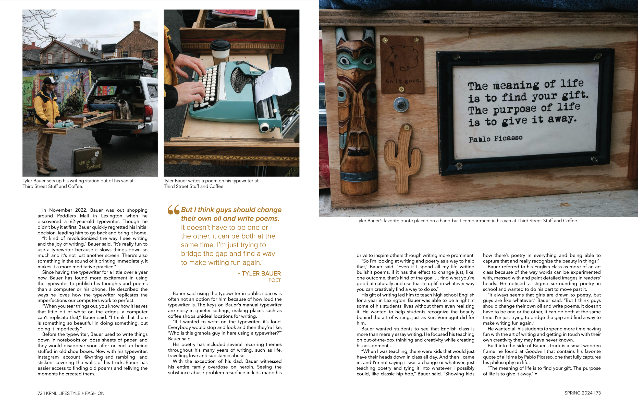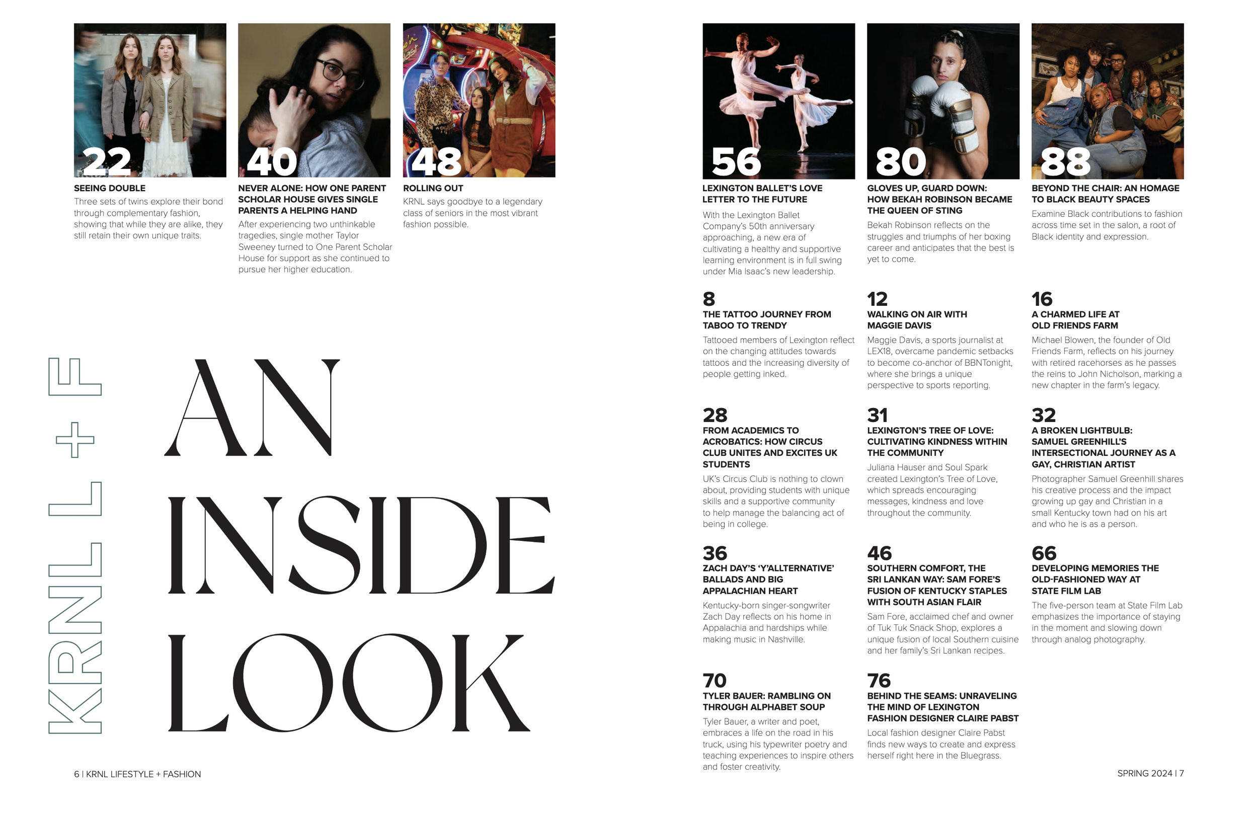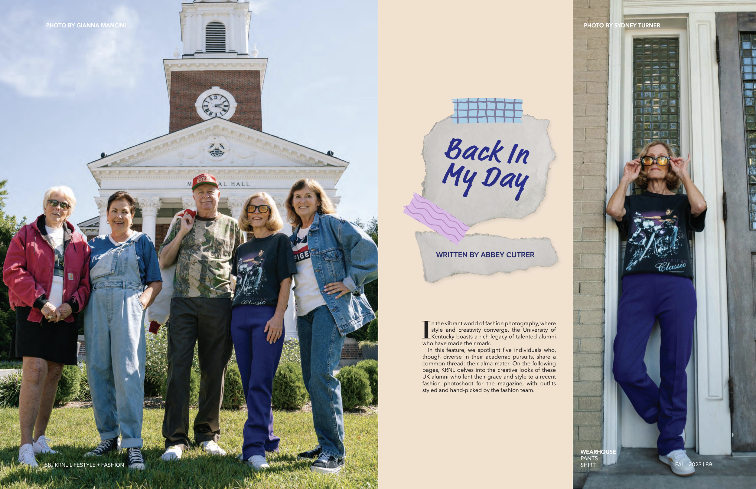 KRNL Lifestyle and Fashion magazine is an award-winning, student-led magazine at the University of Kentucky. During the Fall of 2023, I became an Assistant Creative Director for KRNL Lifestyle and Fashion Magazine. During that time I work with two other creative directors to layout and design the 100-page magazine. In the Spring of 2024, I was fortunate enough to be promoted to Co-Creative director, leading a team of three to layout and design the magazine.